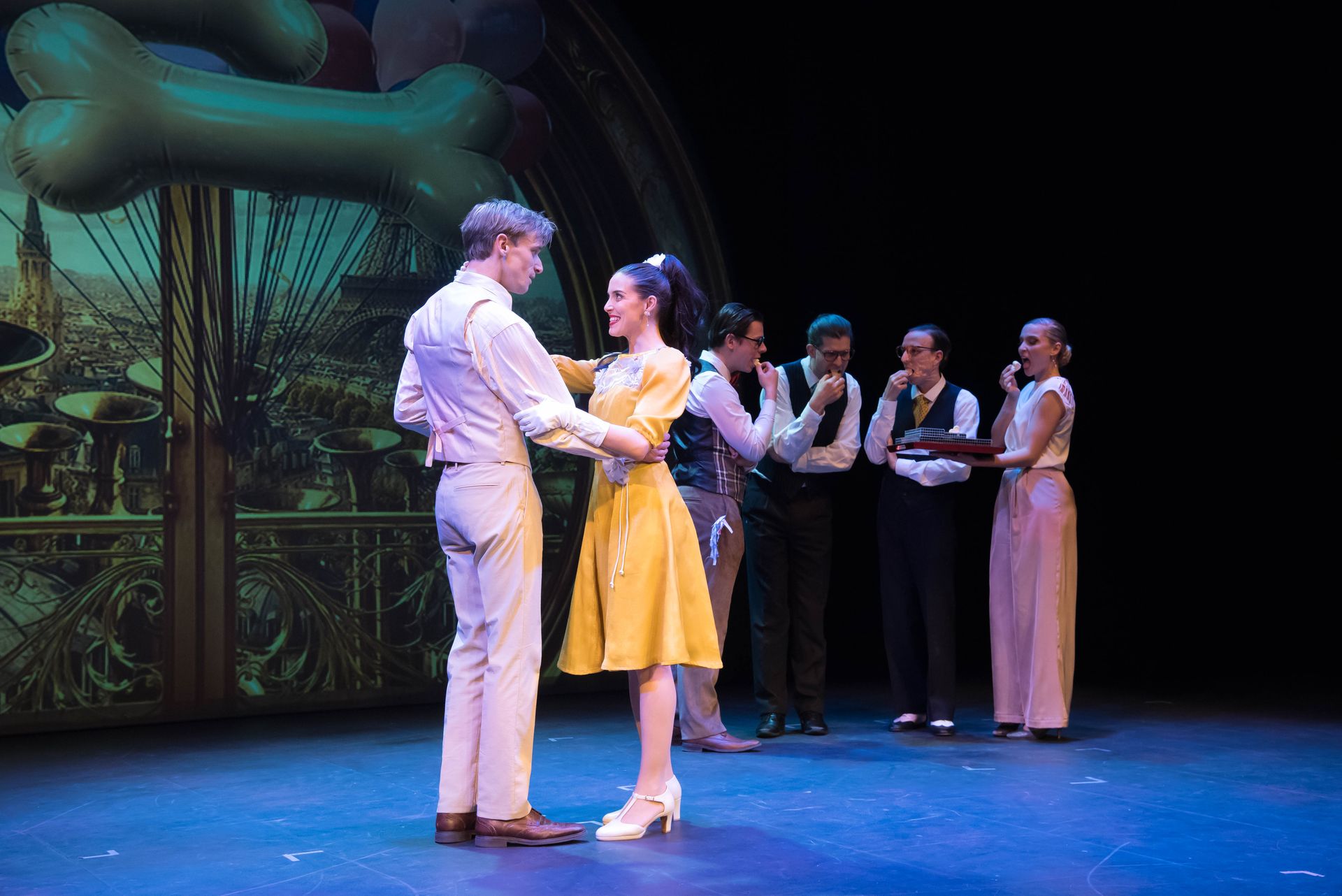 C'est tout d'abord une belle histoire d'amour absolu, et j'avais envie de parler d'amour parce que c'est la seule énergie qui fait déplacer les montagnes. Cette histoire romanesque évolue dans un contexte enchanteur où les objets, les êtres et les animaux sont animés des meilleures intentions. Mais il est menacé par la maladie. Et là, Boris Vian dénonce une série de thèmes, toujours actuels, en utilisant un langage poétique surréaliste et absurde. Ce qui permet l'humour tout en parlant de choses graves. Il interroge la fragilité des relations, de l'amour, la fatalité, la maladie, l'addiction, la précarité, les fanatismes littéraires et culturels, la dépendance au monde du travail, la déshumanisation de notre société, bref tout une série de sujets brûlants aujourd'hui. Le tout au son de la musique de jazz de Duke Ellington. Et j'adore le jazz de cette époque-là.